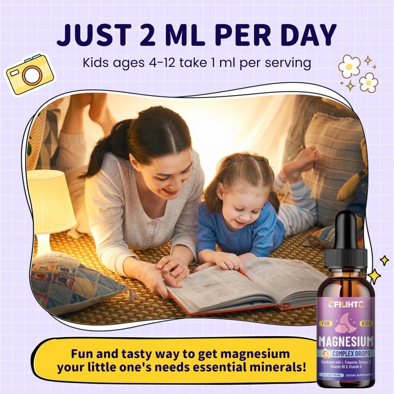 • Premium Multivitamin Support: CFILIHTC's magnesium for kids sleep supplement includes Vitamin D3 and Vitamin B6, which enhance magnesium and calcium absorption rates. We've also enriched our magnesium glycinate liquid with algae-derived Omega-3 to support children's brain and nerve development, vision health, and immune system strength