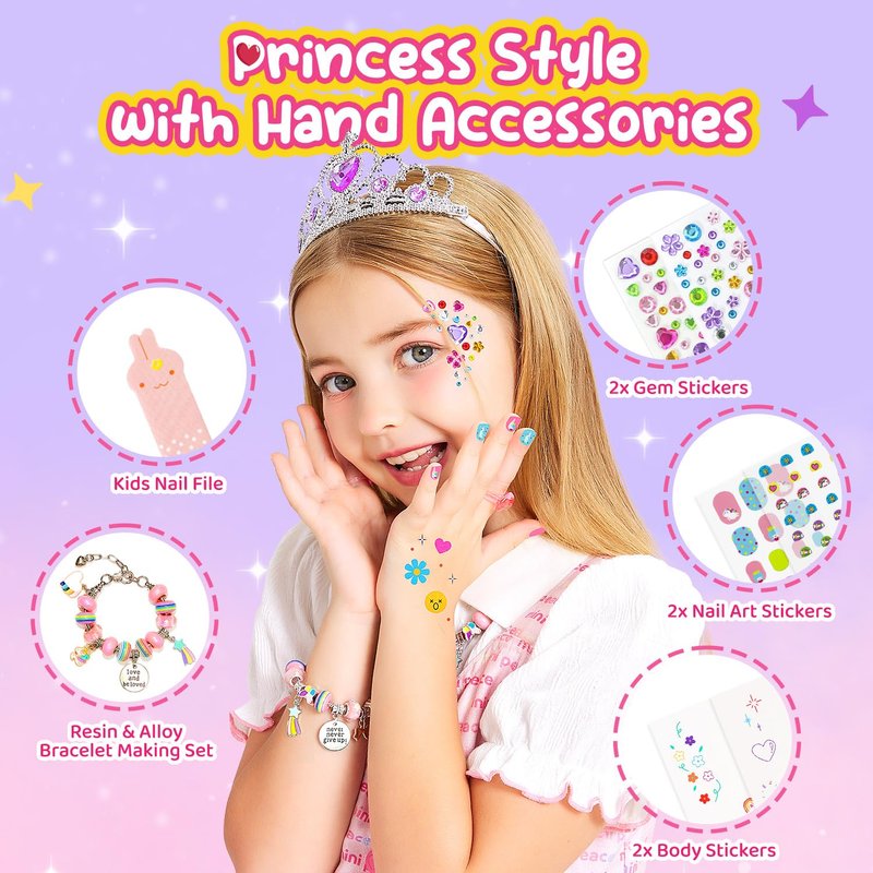 - Encourages Creativity with DIY Jewelry Kit: The included jewelry-making kit adds an extra layer of creativity, inspiring kids to design their own accessories. Both makeup play and jewelry crafting are great for developing fine motor skills and provide fun bonding moments as kids play just like grown-ups.