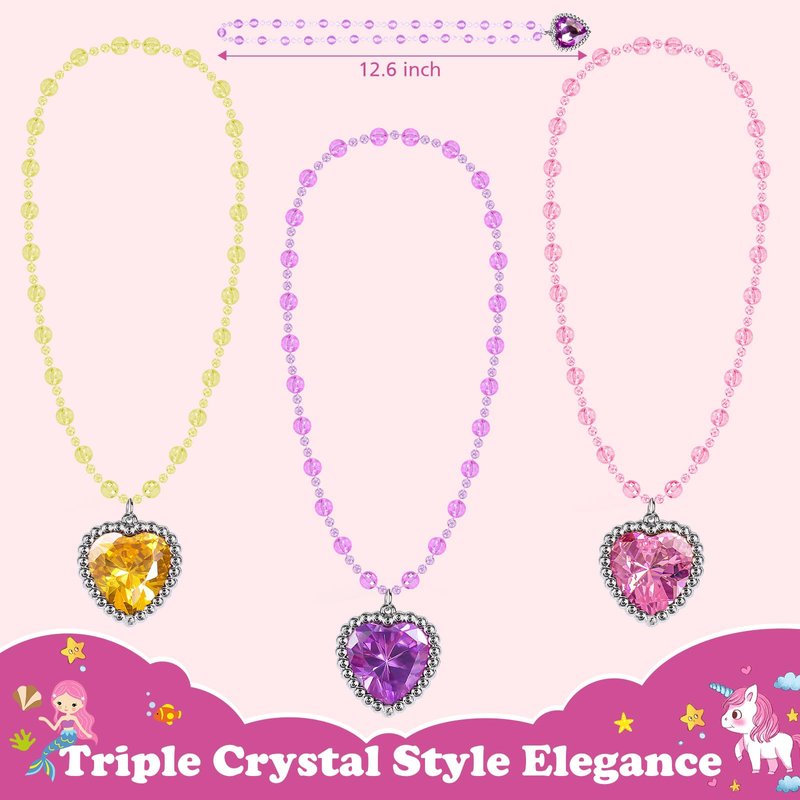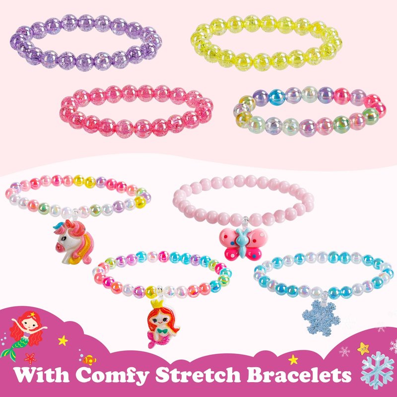 - KIDS JEWELRY FOR DRESS UP PLAY: Made specifically for little fashionistas, this costume jewelry adds sparkle to any outfit. With fun designs like heart necklace, unicorns, mermaids, and snowflakes necklace& bracelets for girls, it's perfect for kids' dress up & pretend play. Whether it's a casual day or a special occasion, these princess accessories help complete any outfit with ease