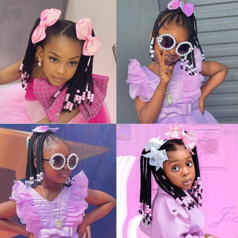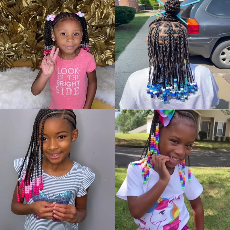 - 🎀Beautify your daughter without pain: Having been headache with your girls hair as to stressing her scalp by braiding all the way.You must try this detachable ponytail for your kids,which is super easy to put on and can give your kids a refreshing looking in one minute. There are multiple colors to choose from,each braids attached a bow ,which color is consistent with the beads color.You can attach the ponytail to your kids natural hair bun,which can give them an attractive hair looking instantly
