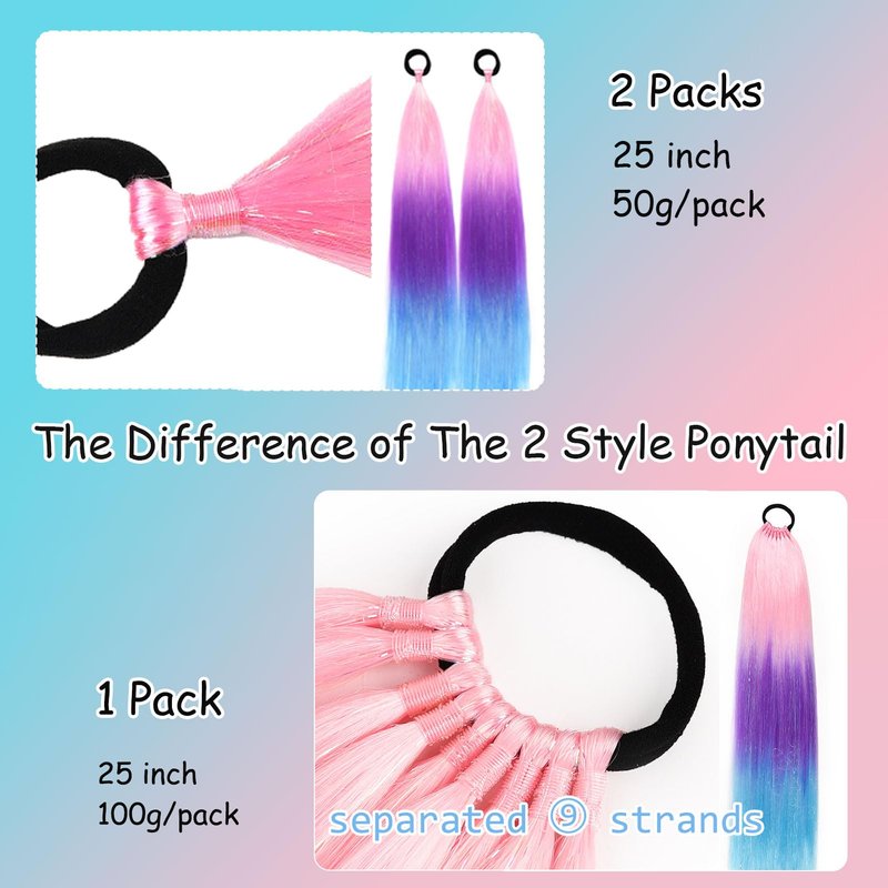 Kids Ponytail Extension for Braids, Festival Hair Extensions for Girls, Colorful Crazy Hair Day Rave Ponytail.