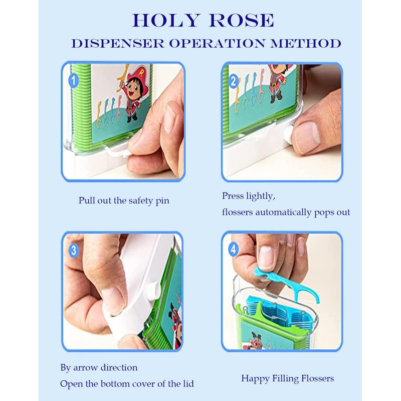 - Engaging Design & Ample Supply**: The Holy Rose Children's Dental Floss Dispenser features a delightful design that appeals to kids, while efficiently storing 88 counts of dental floss. This ensures children can easily manage their own flossing routine , making oral hygiene a fun and accessible task.