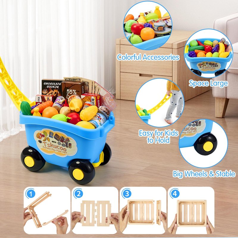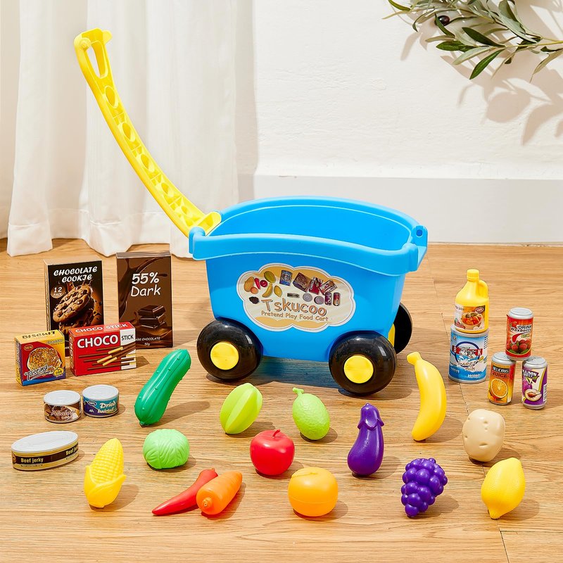 - CREATIVITY AND IMAGINATION: Toddler grocery cart set combines learning and playing in a fun and interactive way, It is great for creative and imaginative playing, then improves kid's motor skill development, imagination, hand-eye coordination and counting ability