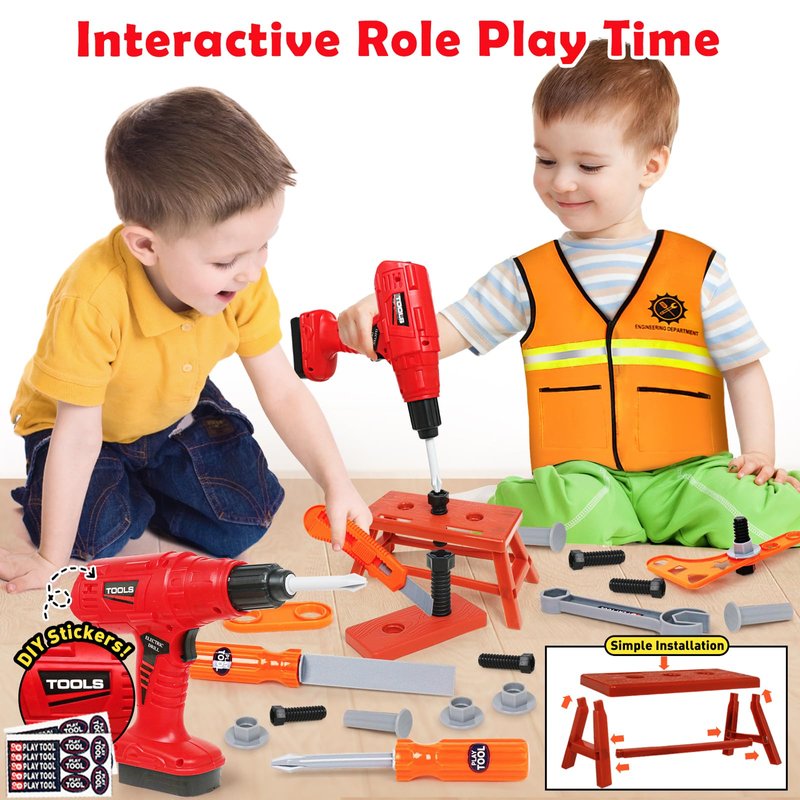 - 【Educational STEM Toys】The various kids tools and accessories in the play set can be easily used in combination or individually by toddlers. Kids can learn to fit screws with electric drill, hit nails with hammer and more tool skills, which helps to stimulate their imagination and engineering talent. Inspire toddlers to promote intellectual development, early STEM and problem solving skills. Awesome educational toys for 3 4 5 6 year old boys girls.