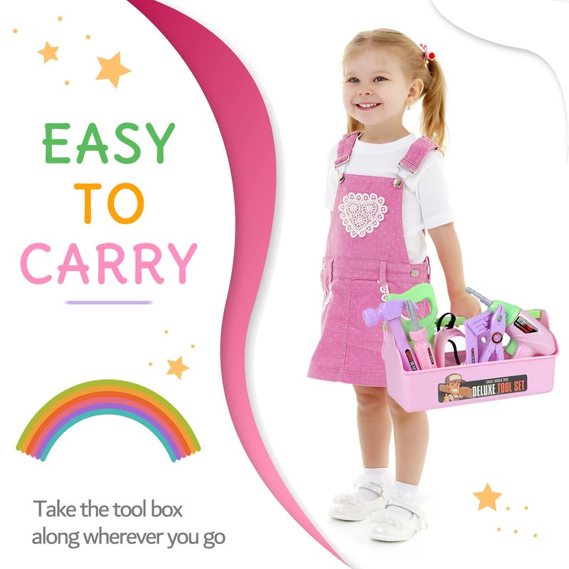 Kids Tool Set with Toy Drill and Tool Box, Pretend Play Construction Tools Toy Gifts for Toddlers Girls Kids Aged 3 4 5 6 7
