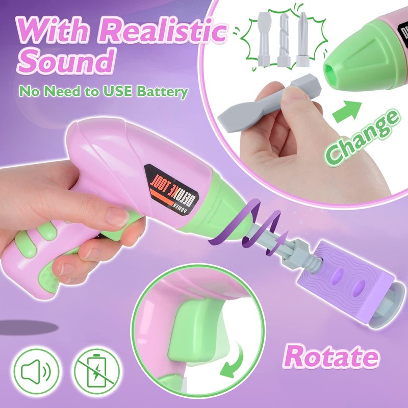 - Realistic Tool Functions: Toddler tool set includes a pretend drill tool that simulates the sound and movement rotation of the drill when pressing the button (No battery needed). Let kids start using these simulation tools, learning the functions and names of tools.