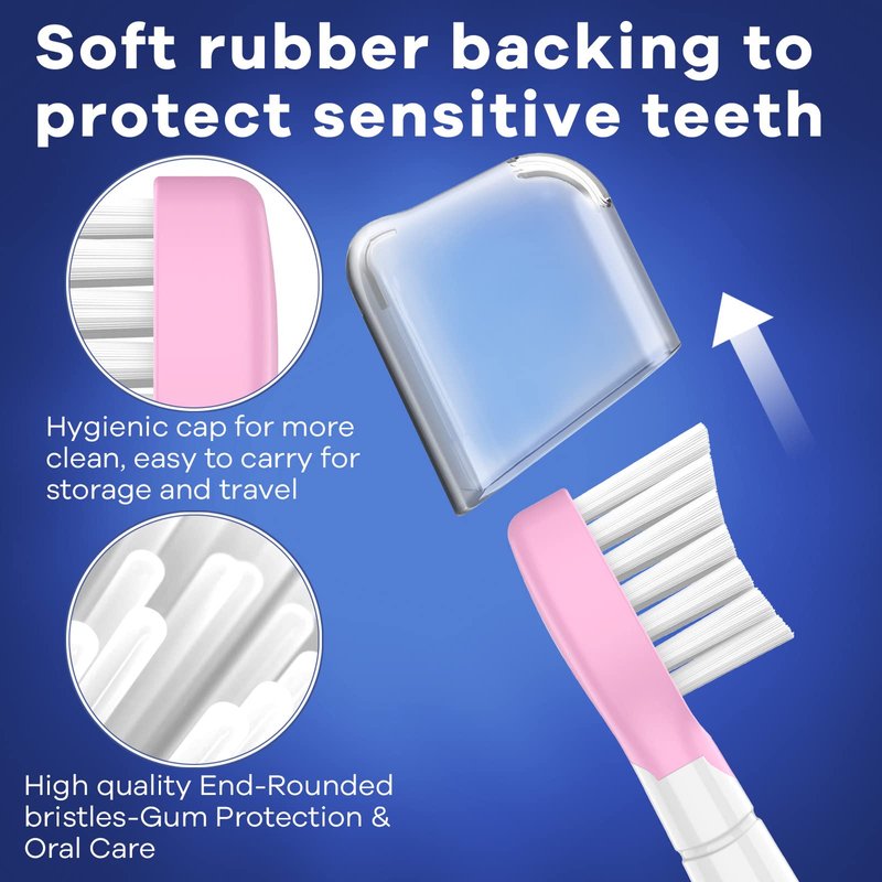 - [Extra-soft End-Rounded bristles for a gentle yet effective brushing]: End-rounded and densely-packed bristles of our kids electric toothbrush replacement heads can offer a tremendous cleaning performance and protect toddler's tender gums and enamel. And toothbrush head features a contoured profile to fit the shape of child's teeth and gums, covering more of the tooth surface.