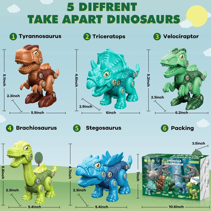 - 【Quality That Will Last for Years】 Unlike other take apart dinosaur toys we use high-quality, non-toxic, and recyclable ABS plastic that is good resistant, which is enough to withstand any dinosaur adventure. And the edges and corners have been specially treated, providing adequate protection for little hands during the assembly.