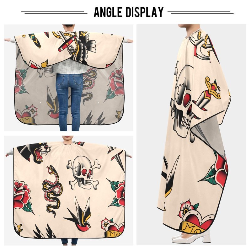 Kigai Hair Cutting Cape for Men & Women Old School Tattoo Waterproof Barber Cape Professional Hairdressing Salon Styling Cape with Adjustable Closure Snap