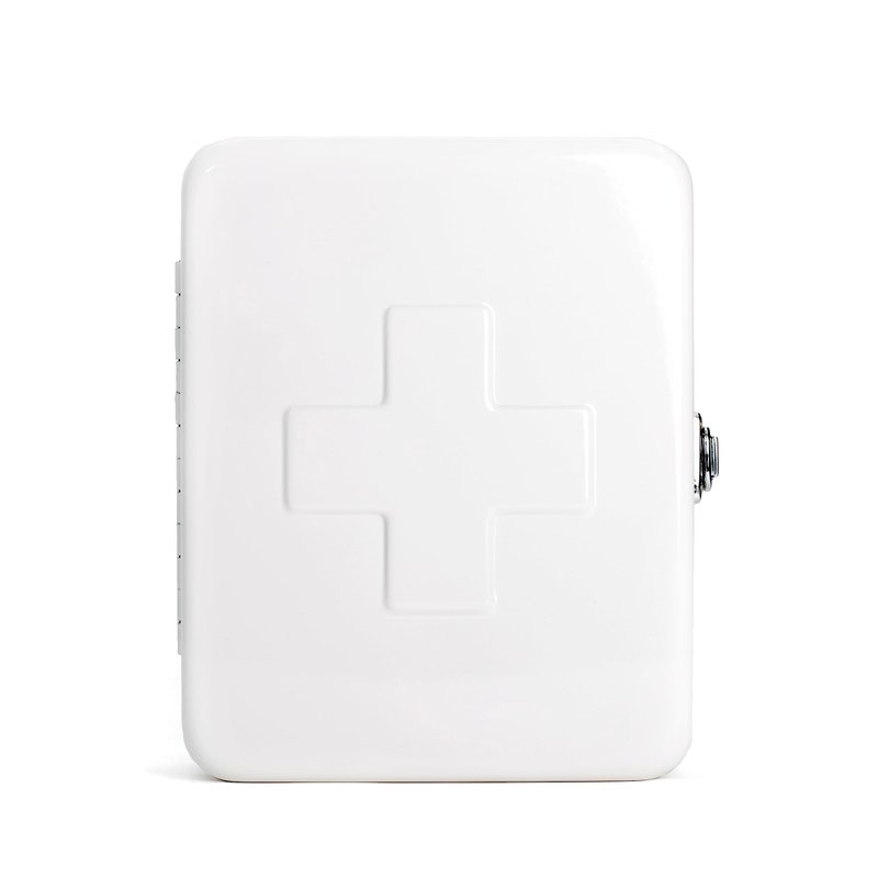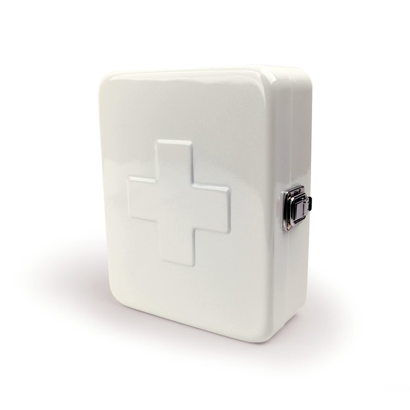 Kikkerland First Aid Kit Box, Multi-Purpose Portable Organizer Case, Alloy Steel, 6"x3"x7.5", White, Suitable for Home, Travel, Office & Camping