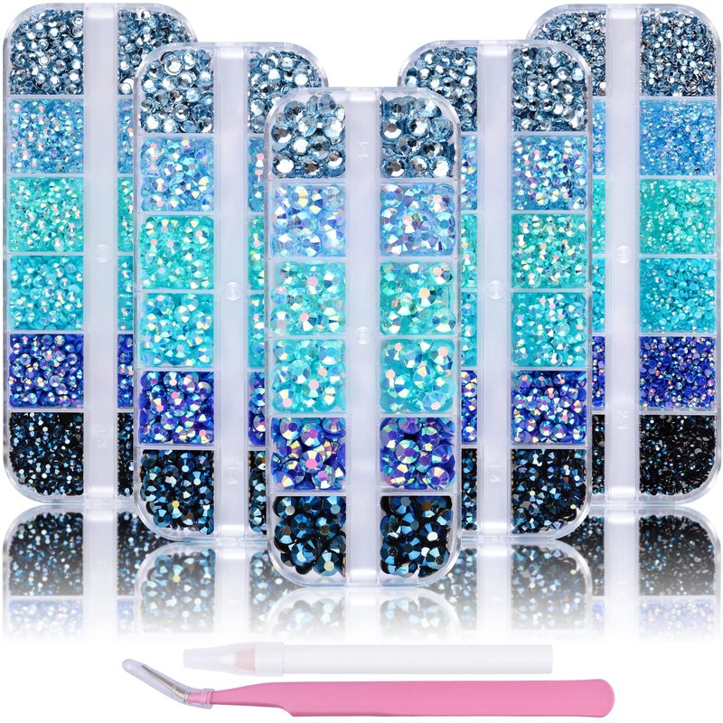 Kikonoke 5 Boxes Nail Art Rhinestones Kit 3D Flatback Jelly Crystal Gems Diamantes Design for Crafts Face Clothes Glass Decorations DIY (Blue)