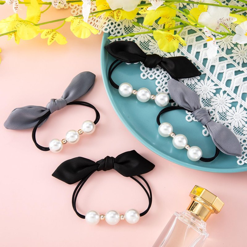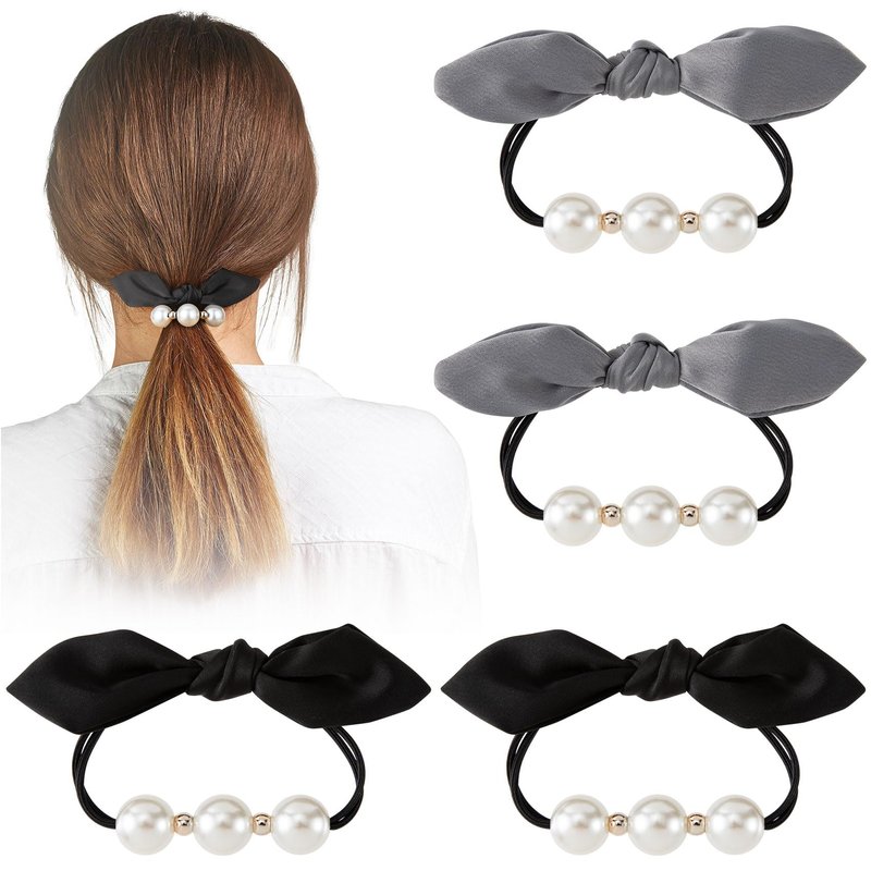 - 【Package Includes】There are 4pcs pearl bow hair scrunchies in black and grey, our bow headbands are very soft and elastic, so they won't tangle or damage your hair.