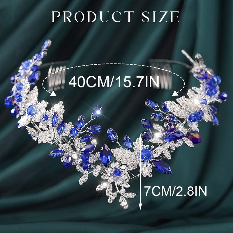 Blue Rhinestone Wedding Tiaras and Crowns Kilshye brand originated in 2013, we are specializing in women hair accessories. We are committed greatly to fashion point for wedding headbands in heart of women. Meet their need and make you charming and beautiful in a crowd. Leaf Bridal Headband for Brides Wedding tiara for brides easy to wear and take off. Leaf headpiece approx size: 15.7*2.8inches/40*7cm length. Rhinestone headbands easy to put on and creates a instant stunning hair style. Crystal tiaras are fit for wedding, prom, party, birthday, photograph and other occasion. Blue crystal headwear won't easy to fade and broken. Prom Hair Accessories for Women Kilshye brand create good bridal crown headbands for women, making you charming at any party. Wedding headdress pass beautiful and happiness to our customers. We are committed to providing customers with women headpieces and different hairstyles to meet their needs. Welcome to the Kilshye store!