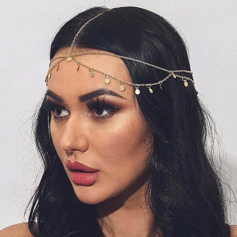 Gold Boho Sequin Head Chain Kilshye are specializing in women hair accessories. We are committed greatly fashion point for gold headpieces in heart of women. Meet their need and make you charming and dazzling in a crowd. Prom Costume Hair Chains Festival head chains are made of alloy and sequins. Unique design will make you charming. Gold coin headbands won't easy to broken and fade. Prom head jewelry adjustable size for women. Sequins hair jewelry is fit for Halloween, festival, costume, prom, wedding, party and other occasion. Bohemian headpiece is a charming hairband for your friend, mom or daughter, they will happy to receive gold headwear. Bohe Headpiece for Women Kilshye brand create sequin headband for women, making you charming at any party. Gold hairband pass beautiful and happiness to our customers. We are committed to providing customers with Halloween hair chain jewelry and different hairstyles to meet their needs. Welcome to the Kilshye store!