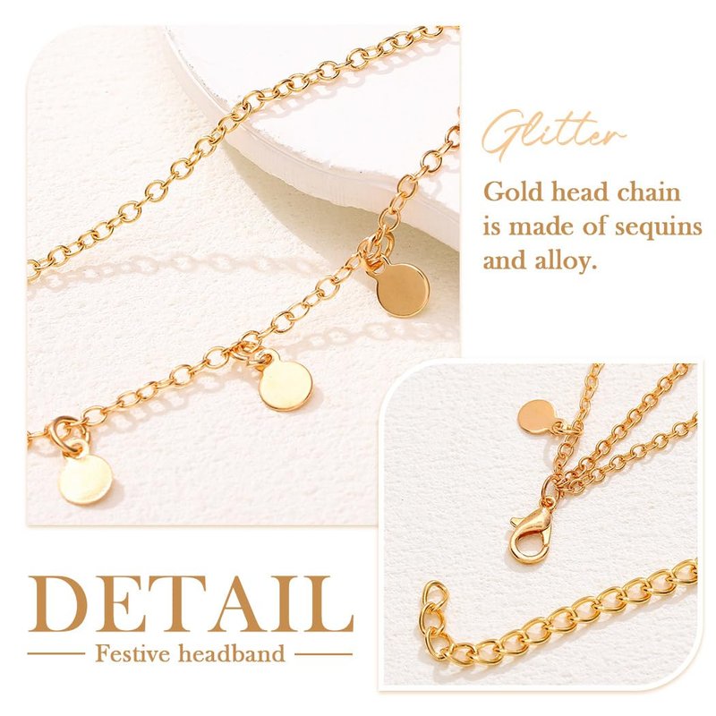 - Gold head chain is made of sequins and alloy. Prom headpieces easy to wear and take off.