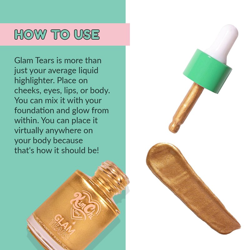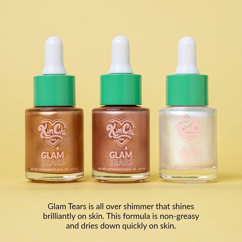 KimChi Chic Beauty Glam Tears Liquid Highlighter, Cheek Shimmer and Body Glitter, Sun-Kissed and Glowing Skin, Pearlescent Finish, Vegan Makeup, Opal Highlighter, 0.56 fl oz