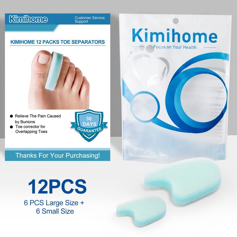 Kimihome 12 Packs Foam Toe Separator,Toe Gasket-Redress Overlapping Toes, Prevent Friction and Release Pressure, Relieve The Pain Caused by Bunions