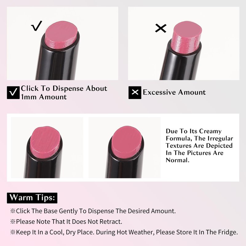 - GLOSSY TEXTURE: Say goodbye to sticky lip products! This solid lip lipstick features a glossy texture that glides on smoothly, leaving your lips feeling soft and moisturized without any stickiness or dryness.