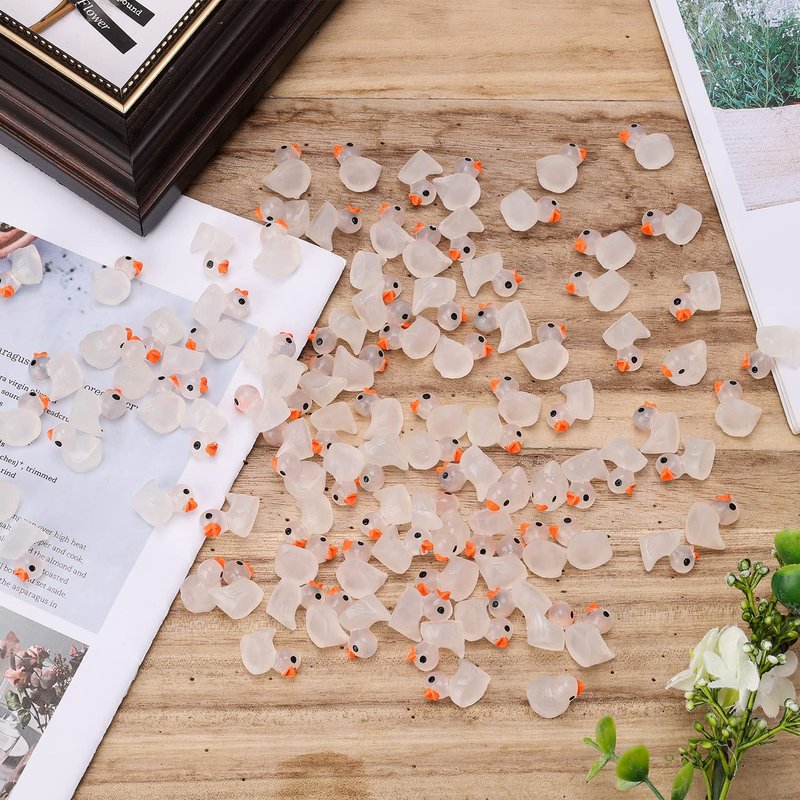 KINBOM 100pcs Mini Luminous Resin Ducks for Crafts, Tiny Ducks Miniature Figures for Aquarium Garden Landscape Dollhouse Ornament Small Potted Decorations DIY