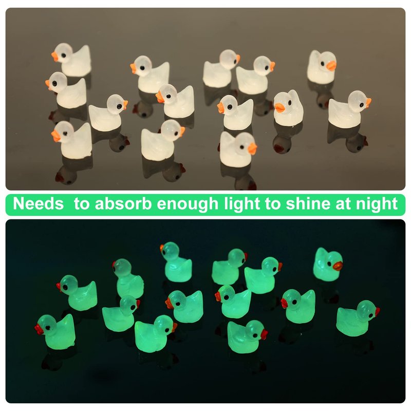 - Package Content: You will receive 100pcs mini luminous resin ducks. Sufficient quantities can meet your various needs. This item will turn nighttime into a fantastic garden after absorbing enough sunlight during the day.