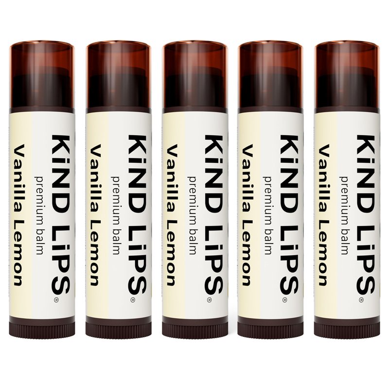 Kind Lips Lip Balm - Nourishing & Moisturizing Lip Care for Dry Lips with Shea Butter, Beeswax & Vitamin E | Vanilla Lemon Flavor | 0.15 Oz (Pack of 5)