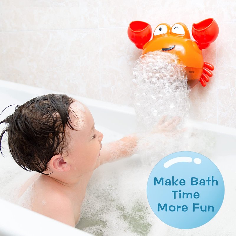 - Bubbly Bath Time: Cute crab bath toy makes colorful bubbles, providing tub time entertainment to help babies, toddlers and preschoolers enjoy their bathing time; This delightful friend of the bath encourages imagination, curiosity and fine motor skills