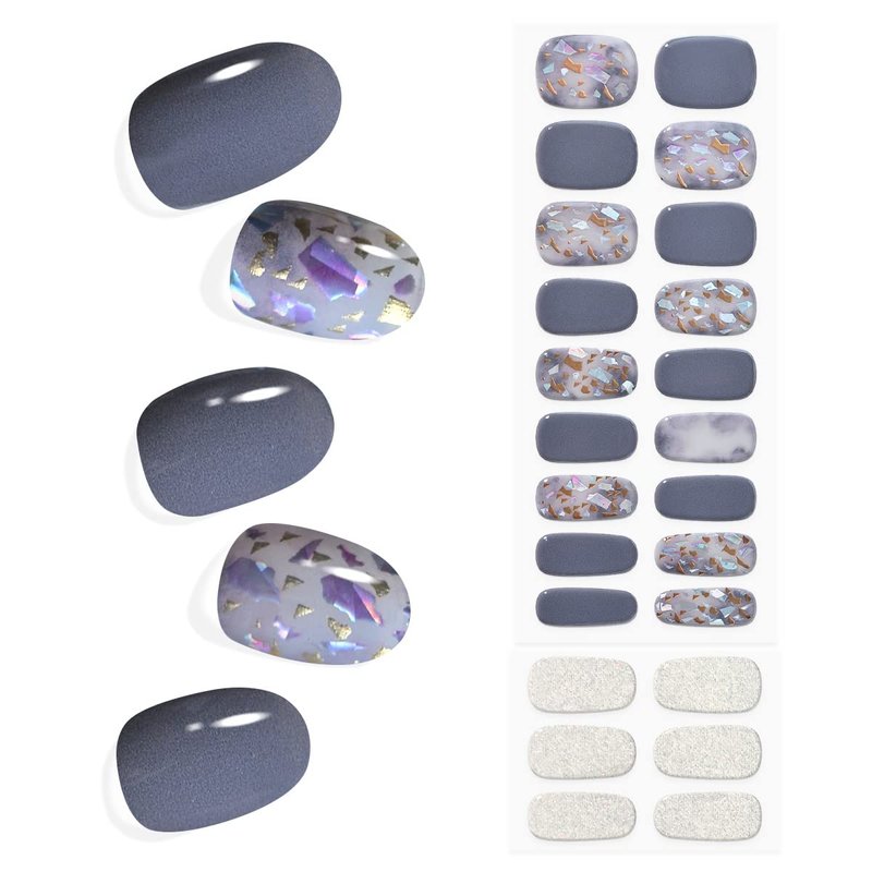 - What You Get - semi cured gel nail strips package contains 24 nail wraps (18 accent and 6 solid color random), 1 prep pads, 1 nail file, and 1 wooden stick. This is a great value for money nail art kit. It can be used whether your nails are round or square. The set is vegan, not tested on animals, and contains no harsh chemicals.