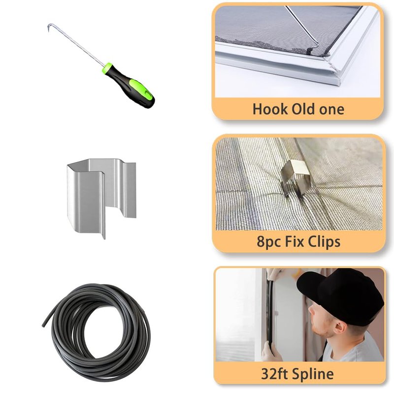 - đ ă4 in 1 Great MatchăNo set is more complete than this screen spline tool kit, one step in place, and affordable, word-of-mouth product. The screen clips and the spline roller tool can be used together to help install, repair, and replace the screen; help install the screen easily and quickly, saving your time and effort on installation.