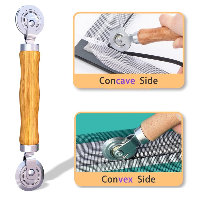 - đ ăRoller & HooksăSolid wood handle + double carbon steel bearing metal wheels, heavy beech wood handles are hard and crack-free, thickened and enlarged metal convex and concave double wheels.Removal Hooks - are sharp, the aged battens can be hooked out by screen hooks.
