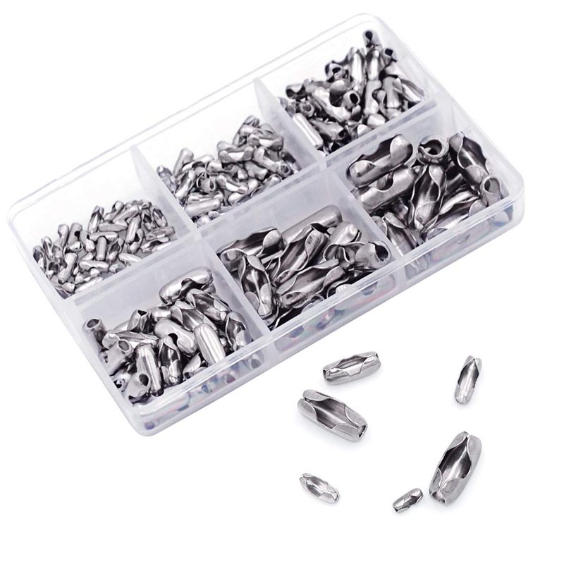 - Multiple Sizes — 6 Sizes Available: package includes 155 pcs ball chain connectors - fit for 1.6mm(40pcs)/2mm(30pcs)/ 2.4 mm(30pcs) /3.2mm(30pcs)/4.0mm(10pcs)/4.8mm(15pcs).