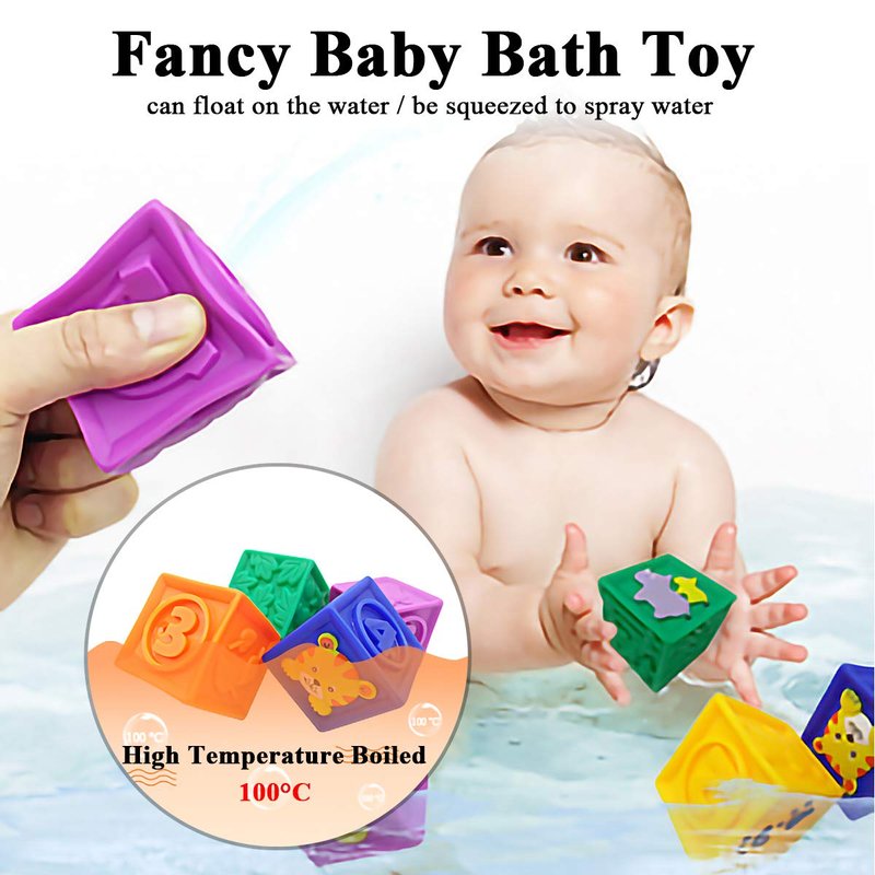 - SAFE BPA-FREE SILICONE MATERIALS - These squeeze baby blocks are made of food-grade silicone materials which is the same as the baby pacifier. Non-toxic and odorless, safe for baby play, even teething. 100°C high-temperature resistance, can be boiled to disinfect. (Note: Please do not boil for too long time.)