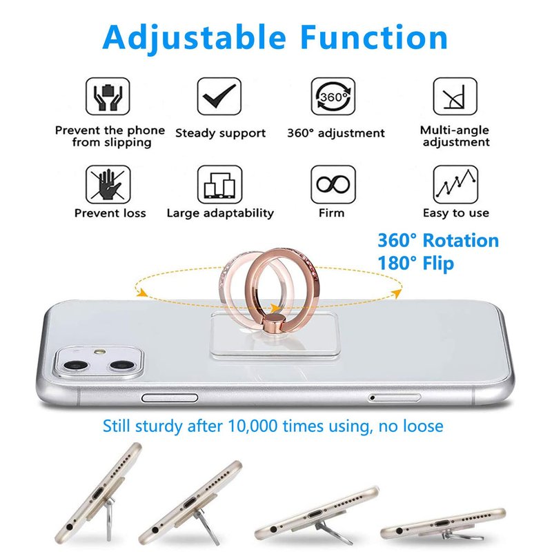 - 【Free Rotation Phone Ring Stand】360 degrees rotation and 180 degrees flip make the phone ring grip more flexible and convenient to provide you with adjustable viewing angles, to meet your different viewing angles for reading and watching videos.
