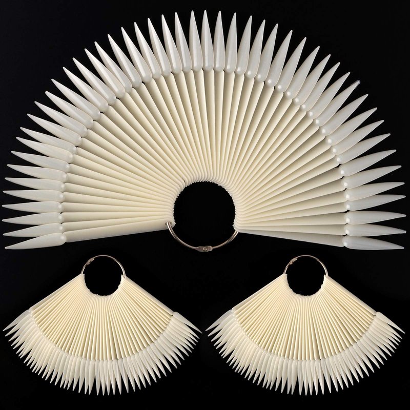 KINJOEK 3 Set Total 150 Pointed Tips Natural Nail Swatches Sticks, Nail Art Supplies Stiletto Practice Tips Display Board Sample Sticks with Ring for Nail Art Polish Color Test Display Home DIY