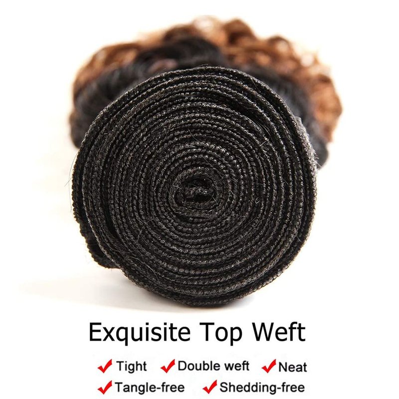 - 【Ombre Bundles Material】: Unprocessed Brazilian Virgin Ombre Brown Kinky Curly Human Hair Bundles. Soft and Elastic.