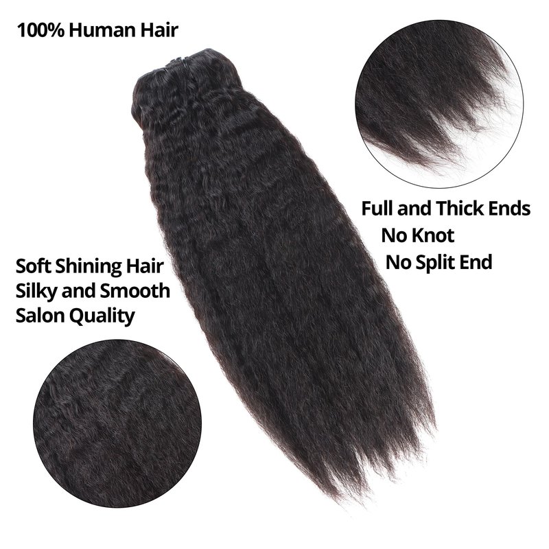 Kinky Straight Clip in Hair Extensions Real Human Hair Natural Black Double Weft Clip ins for Women 16 Inch 120g 8pcs Seamless Kinky Straight Clip on Extensions Human Hair (#1B, 12inch Kinky Straight)