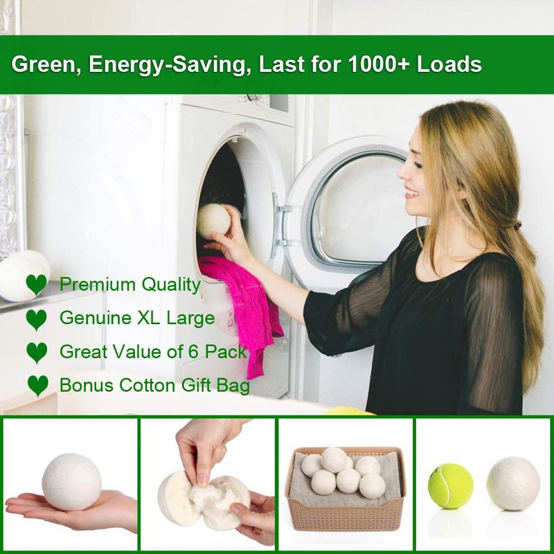 KINTOR Wool Dryer Balls XL 6 Pack 2.95", 100% New Zealand Wool Organic Fabric Softener, Hypoallergenic Baby Safe & Unscented, Chemical Free to Reduce Wrinkles & Static Cling, Shorten Drying Time