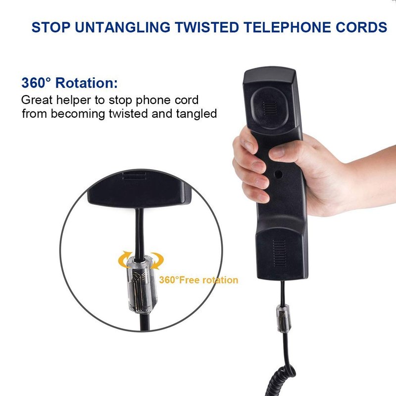- Telephone cord Detangler: ROTATES 360 DEGREES - Automatically rotates as you do while you are talking on the phone to effectively prevent your coiled phone cord from being tangled and messed up.