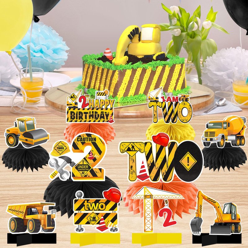 10Pcs Construction 2nd Birthday Party Decorations Honeycomb Centerpieces for Boy
