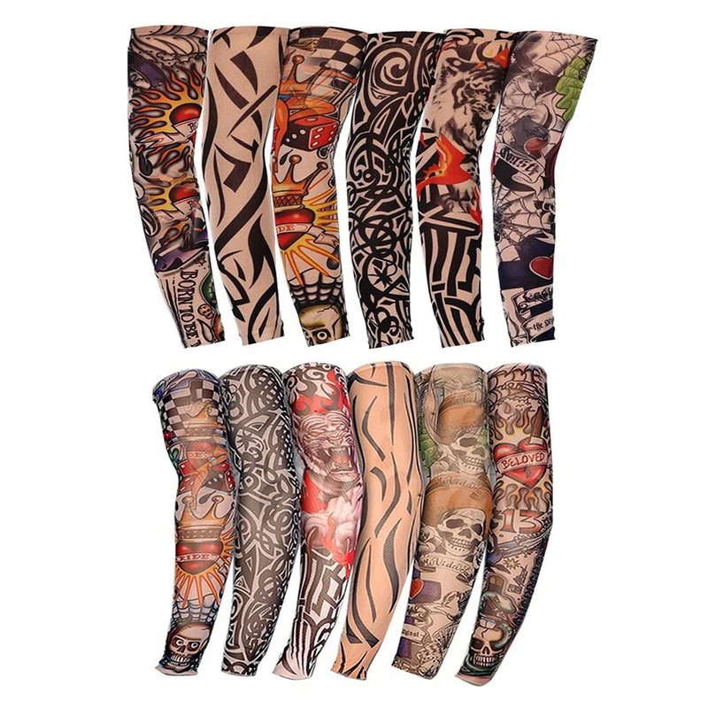 Kirozanny 12pcs Art Fake Temporary Tattoo Sun Protection Compression Arm Sleeves Temporary Tattoo Arm Sleeves(random color)