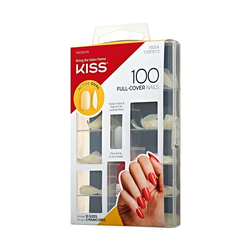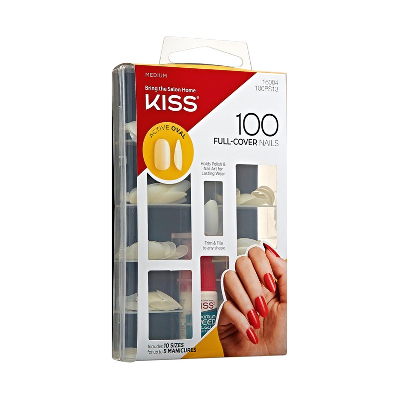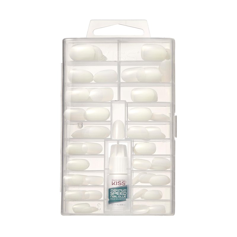 KISS 100 Full-Cover Nails, Press-On Nails, Nail glue included, 'Active Oval' Shape, Clear, Medium Size, Oval Shape, Includes 100 Nails, 3g Maximum Speed Nail Glue