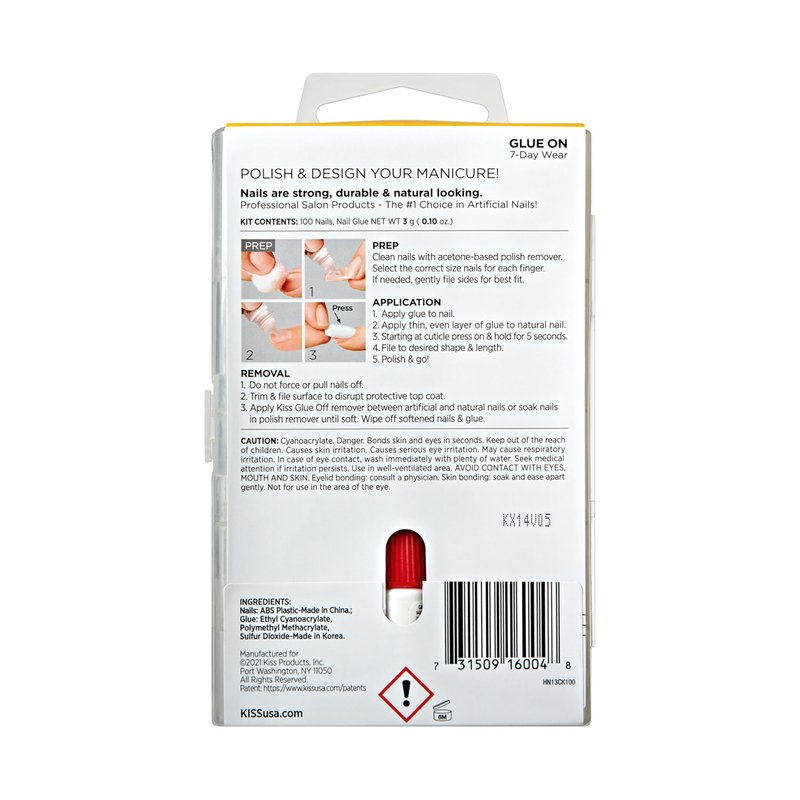 - Stick with Kiss: Our easy application glue-on and press-on nails have such a strong bond, they rarely budge ‘till you remove them; Many of our nail kits come with glue on and adhesive tab press on options