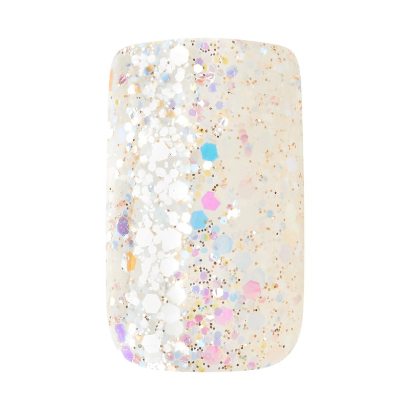 KISS Gel Fantasy Press On Nails, Nail glue included, 'How Dazzling', Silver, Medium Size, Square Shape, Includes 28 Nails, 2g glue, 1 Manicure Stick, 1 Mini File