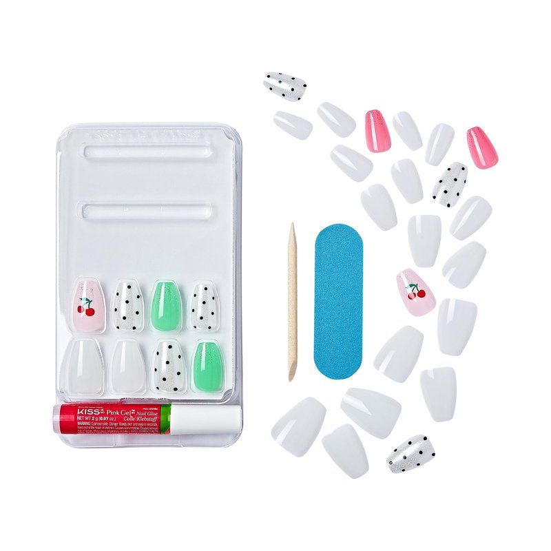KISS Gel Fantasy, Press-On Nails, Nail glue included, Jelly Baby', Light Multicolor, Short Size, Coffin Shape, Includes 28 Nails, 2g Glue, 1 Manicure Stick, 1 Mini file