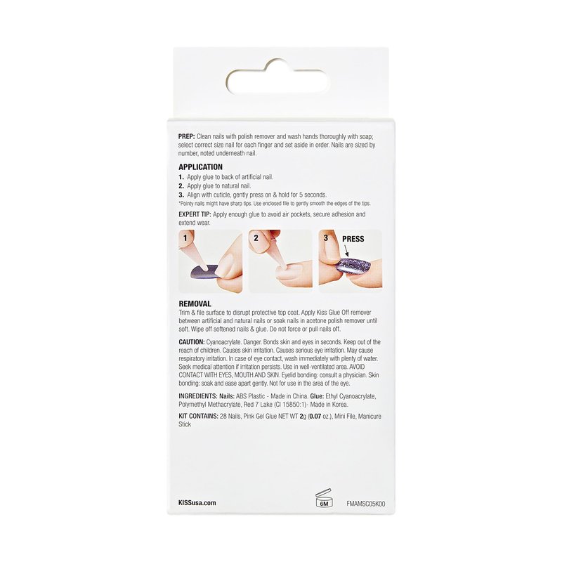 - Complete All-In-One DIY Nail Kit: Comes with everything you need for a superior at-home manicure, including 28 press-on nails, pink gel nail glue net wt. 2 g (0.07 oz.), mini nail file, and manicure stick.