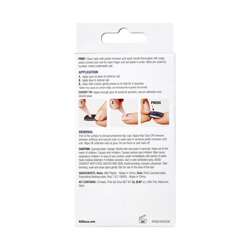 - Complete All-In-One DIY Nail Kit: Comes with everything you need for a superior at-home manicure, including 24 press-on nails, pink gel nail glue net wt. 2 g (0.07 oz.), mini nail file, and manicure stick.