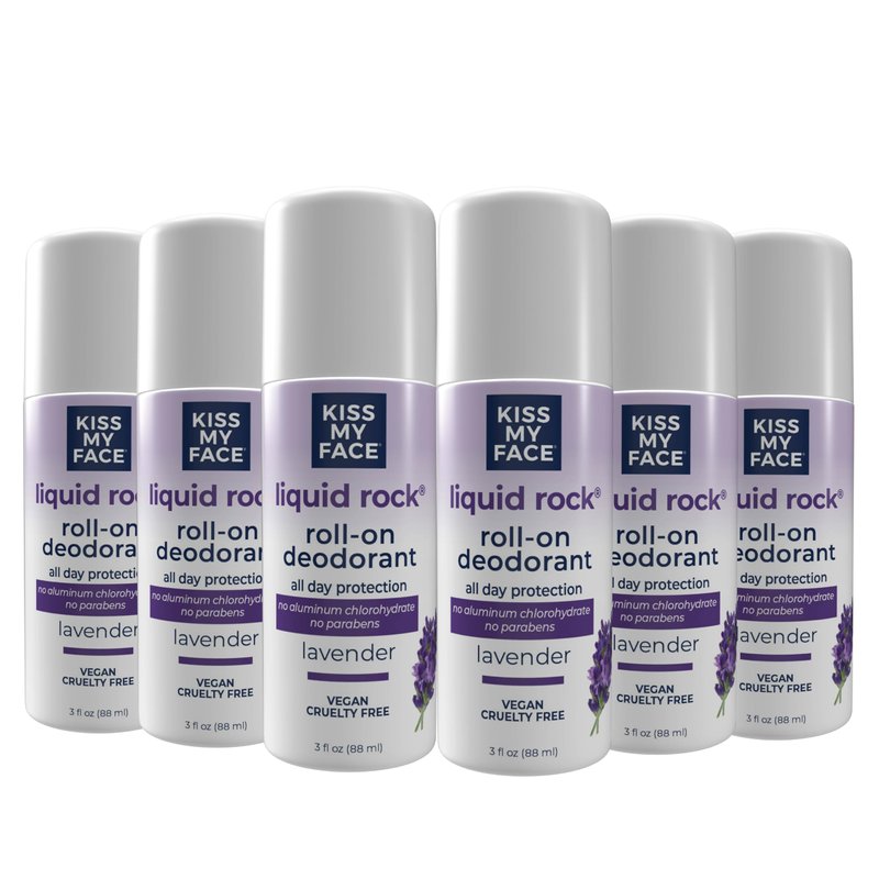 Kiss My Face Liquid Rock Roll-On Deodorant, Lavender, Aluminum Chloralhydrate Free Deodorant For Women And Men, With Added Willow Bark And Mineral Crystal Salts, 3 Oz Roll On, 6 Pack