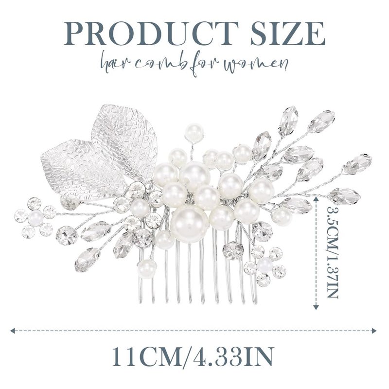 Kisshine Pearl Bride Wedding Hair Comb Rhinestone Silver Bridal Headpiece Leaf Hair Piece Wedding Hair Accessories for Women and Girls