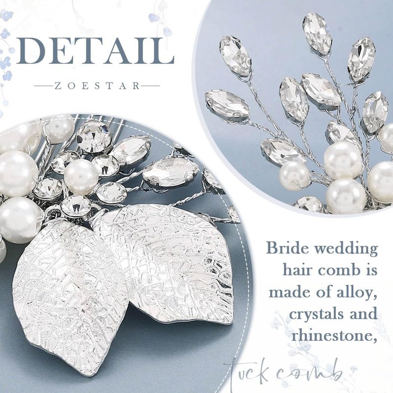 - Crystal hair piece is made of alloy, pearls, crystals and leaf, which is not easy to fade and break.