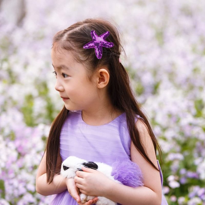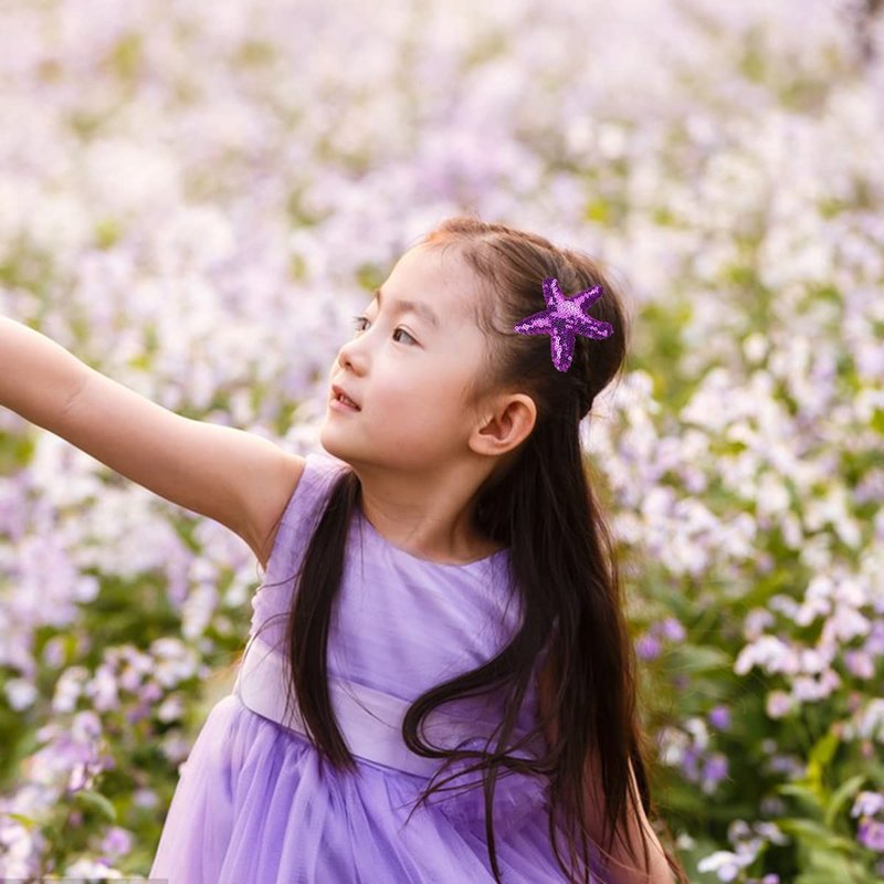 Kistreao 4Pcs Sequins Starfish Hair Clips Sea Star Glitter Hair Pins Mermaid Hair Barrettes Sparkling Hair Accessories for Women Girls Mermaid Birthday Wedding Celebration Beach Party Supplies(Purple)