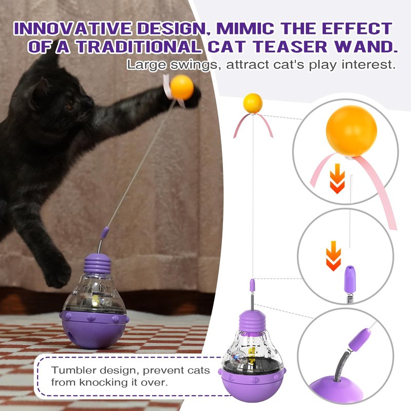 KitchiFlora Cat Toys for Bored Indoor Cats Tumbler Interactive Cat Toys with Teaser Wand Cat Food Dispenser - Ideal for Exercise and Boredom Relief Pet Supplies Birthday Gift (Purple)